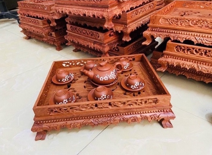 Khay trà gỗ được làm từ chất liệu gỗ hương loại gỗ chuyên dụng trong phong thủy và tâm linh. Sản phẩm được chạm khắc hoa văn cầu kỳ và tinh xảo hoàn toàn thủ công. Bên cạnh đó, bạn có thể tháo rời khay để vệ sinh sạch sẽ. Đây là một vật dụng hữu ích và đẳng cấp cho mỗi ngôi nhà.