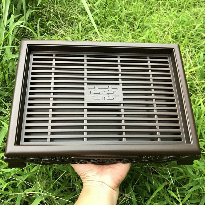 Khay trà nhựa giả gỗ được sản xuất bởi công ty SongLong với thiết kế tinh xảo hoa văn sang trọng. Sản phẩm có 3 kích thước cho bạn lựa chọn như khay chân quỳ to, khay trà chân quỳ bé và khay trà không chân. Đây là một món quà ý nghĩa để tặng người thân, người quen vào dịp quan trọng hoặc ngày lễ tết.