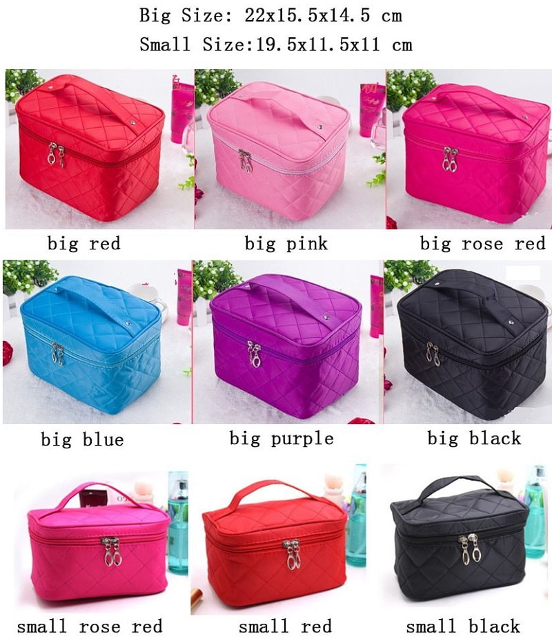 Túi đựng mỹ phẩm được làm từ chất liệu Nylon, chống thấm nước hiệu quả. Túi có màu hồng, đỏ, đen, xanh dương và đỏ hồng cho bạn thỏa sức lựa chọn theo sở thích hay nhu cầu của bạn. Sản phẩm có quai cầm chắc chắn, khóa kéo mượt thuận tiện trong quá trình sử dụng của bạn.