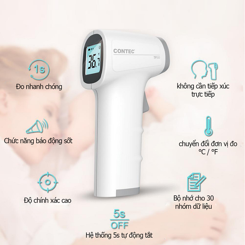 Ngoài đó nhiệt độ cơ thể, đo trán đa chức năng đo thân nhiệt, nó còn có thể đo nhiệt độ phòng kết quả có trong 1 giây tích tắc nhanh chóng, đo nhiệt độ không cần tiếp xúc với cơ thể bé. Đặc biệt có ghi nhớ kết quả đo trước đó. Có tín hiệu âm thanh báo kết quả, và đặc biệt là không thấm nước. Đo ở miệng, nách hoặc hậu môn thuận tiện dễ dàng.