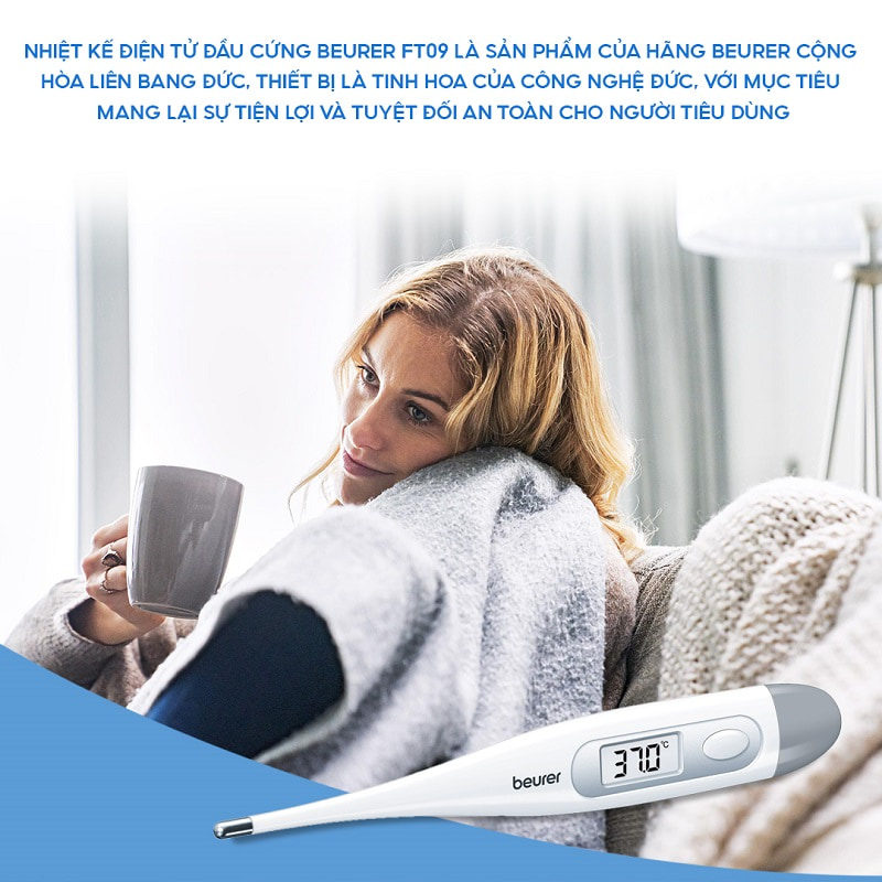 BEURER là thương hiệu chuyên sản xuất các thiết bị và đầy đủ dụng cụ chăm sóc sức khỏe đến từ Đức và nổi tiếng trên toàn Châu  u, được thành lập từ năm 1919, được các giải thưởng uy tín trên thế giới. Sản phẩm đã được kiểm nghiệm lâm sàng, chỉ cần bật nút công tắc là đo được rất dễ sử dụng, có thể đo ở miệng, nách hoặc hậu môn. Độ chính xác rất cao, an toàn với mọi người đặc biệt là với trẻ nhỏ.