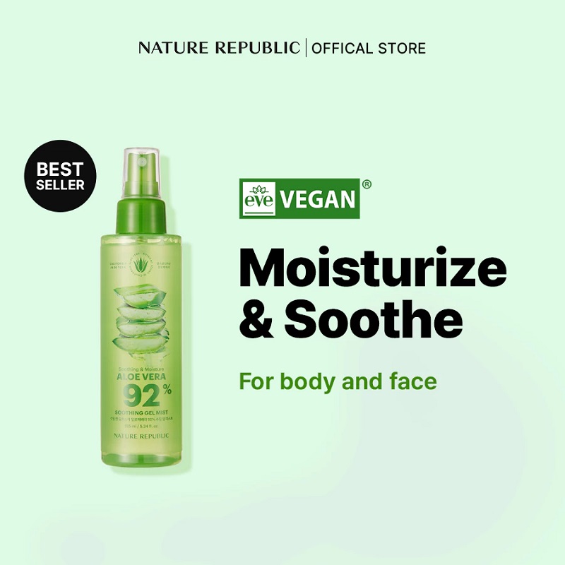 Nature Republic Aloe Vera 92% là dòng xịt khoáng chứa chiết xuất lô hội tự nhiên, nổi tiếng với khả năng làm dịu và dưỡng ẩm hiệu quả. Đây là lựa chọn lý tưởng cho những ai yêu thích sản phẩm từ thiên nhiên.