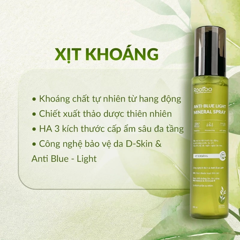 - Xịt khoáng cấp ẩm Rootoo chống ánh sáng xanh giúp dưỡng ẩm