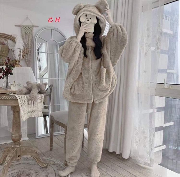 3. Bộ quần áo mùa đông đồ lông gấu có túi cho nữ