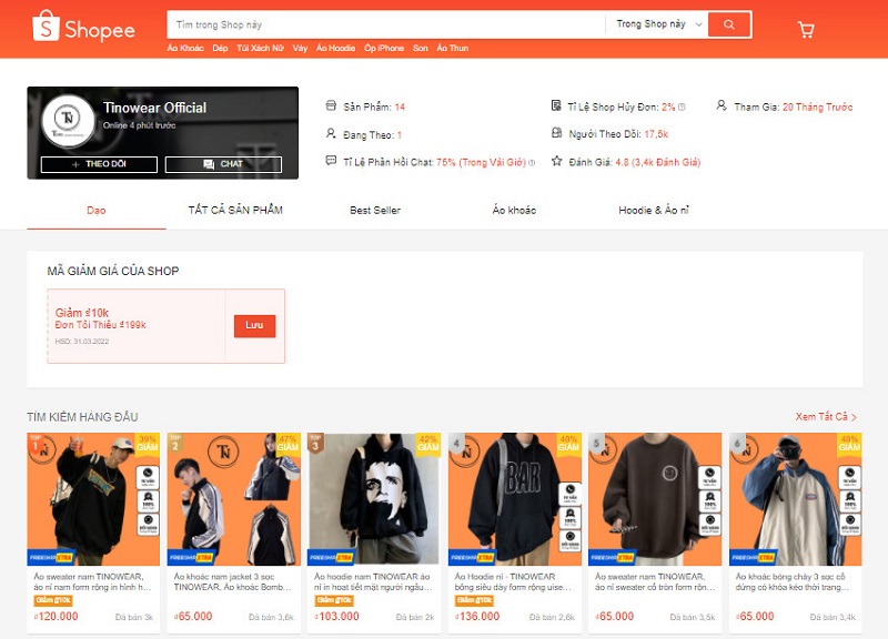 5. Tino Swear Official - Shop bán áo hoodie nam chất lượng trên Shopee
