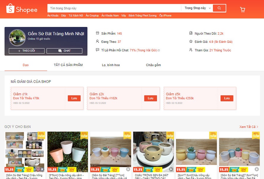 Ngay sau đây, chúng tôi sẽ gợi ý đến bạn 7 Shop bán chậu cây cảnh đẹp, uy tín nhất và được đánh giá cao trên Shopee. Bạn hãy cùng chúng tôi tìm hiểu ngay nhé.