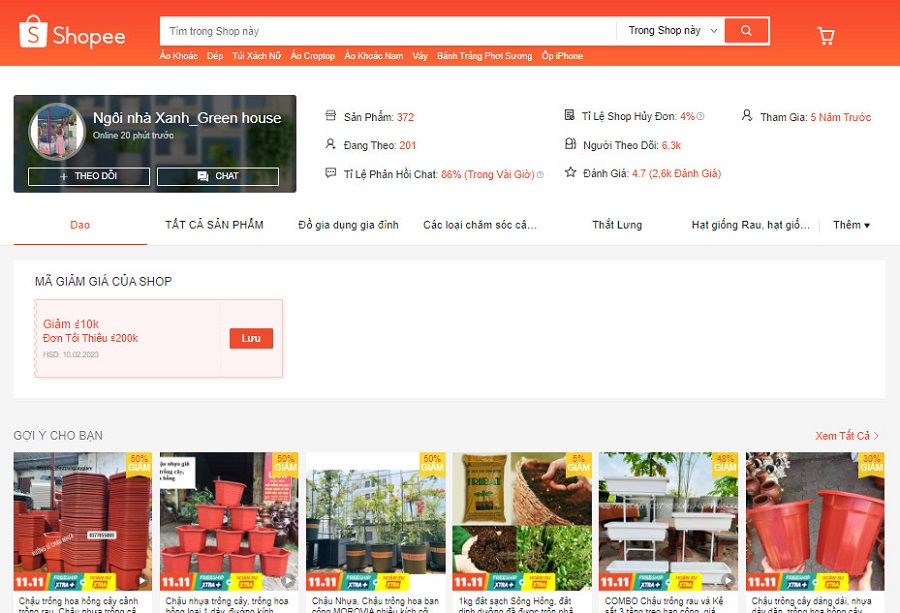 Ngôi nhà Xanh_Green house là gian hàng chuyên bán sỉ lẻ đồ gia dụng gia đình, đồ làm vườn, đồ trồng cây cảnh, đồ gốm sứ các loại. Tất cả sản phẩm của Shop đều là ảnh thật 100%, hàng thật như ảnh, cao cấp và siêu bền. Sản phẩm vô cùng đa dạng nên bạn có thể lựa chọn theo mục đích sử dụng riêng bạn. Shop còn có 2 mã giảm giá vận chuyển Freeship Extra cho bạn là Giảm 15K cho đơn hàng từ 50K và Giảm 70K cho đơn hàng từ 300K.