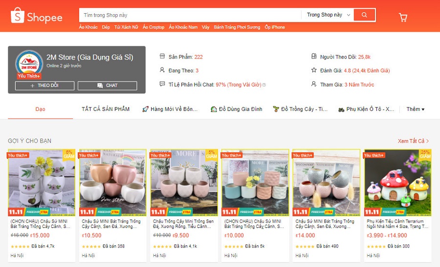 2M Store (Gia Dụng Giá Sỉ) là gian hàng chuyên cung cấp các sản phẩm chính hãng, chất lượng như chậu cây cảnh, đồ trồng cây, phụ kiện tiểu cảnh Terrarium, nhà cửa đời sống, văn phòng, phụ kiện xe, mẹ & bé. Sản phẩm có thiết kế đẹp, chất lượng hoàn thiện cao, vật liệu bền bỉ, hàng thủ công mỹ nghệ cao cấp và phù hợp nhiều không gian nội thất. Chất lượng cao nhưng sản phẩm lại có giá thành vô cùng phải chăng.
