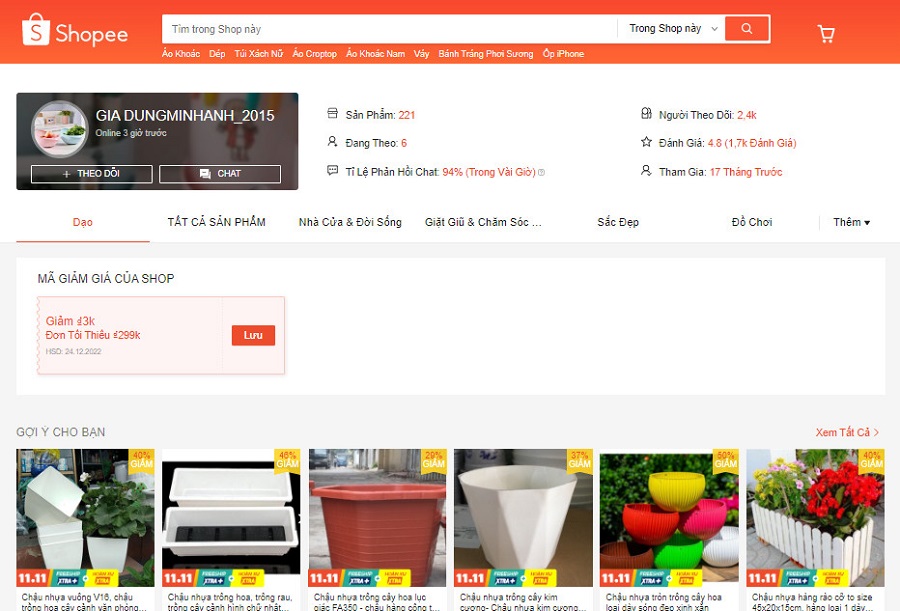 Cách lấy mã giảm giá khi mua chậu cây cảnh trên Shopee