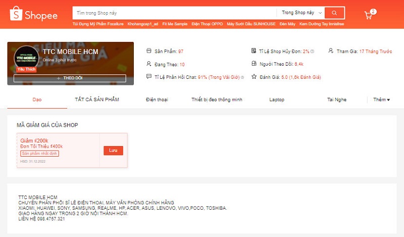 >> Xem ngay: Tổng hợp mã giảm giá TTC MOBILE HCM trên Shopee hôm nay