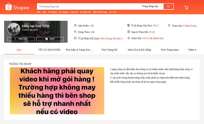 Hàng tạp hóa 1988 được thành lập trên nền tảng Shopee từ 5 năm trước với lượt đánh giá, lượt người theo dõi đáng ngưỡng mộ. Những sản phẩm trên Hàng tạp hóa 1988 đều là hình ảnh do shop tự chụp 100%, hàng luôn có sẵn nên bạn có thể yên tâm khi mua hàng tại gian hàng.