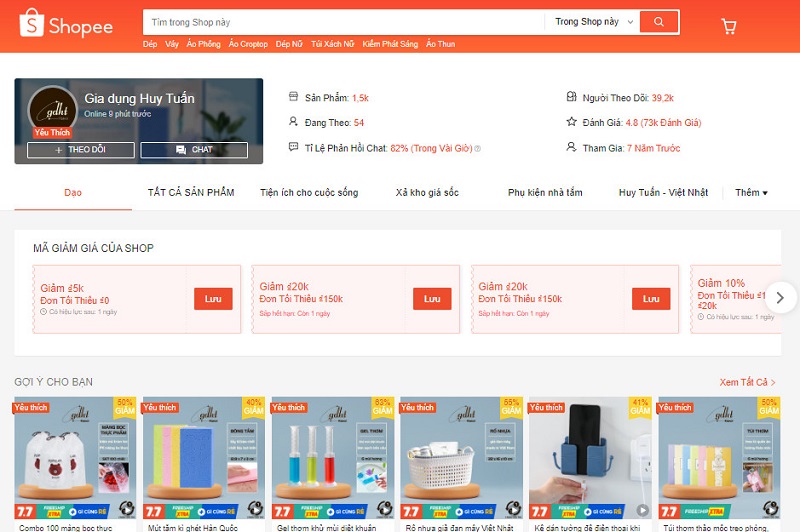 Bước 2: Bạn sẽ tìm thấy đầy đủ các loại mã giảm giá cho toàn sàn hoặc từng gian hàng cụ thể. Để xem sản phẩm mà bạn muốn mua có mã giảm giá, voucher khuyến mãi nào hay không thì bạn có thể nhập trực tiếp link sản phẩm vào ô Tìm kiếm.