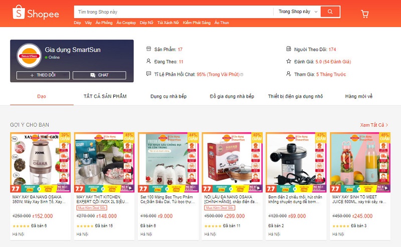 Gia dụng SmartSun là đơn vị chuyên cung cấp các đồ gia dụng chính hãng với nhiều kiểu dáng, mẫu mã mới nhất cho chị em nội trợ. Bên cạnh những đồ điện gia dụng sử dụng trong nhà bếp như máy xay sinh tố, máy ép trái cây, nồi lẩu, cốc hâm nóng,... thì gia dụng SmartSun còn bán màng bọc thực phẩm gấu (sản phẩm được mua nhiều trên Shopee). Sản phẩm tại shop này luôn đảm bảo chất lượng và nhận được phản hồi tích cực từ người tiêu dùng.