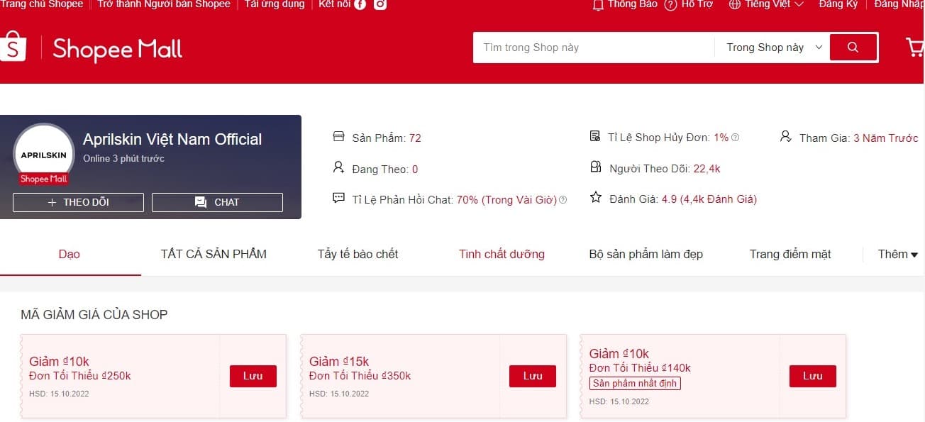 Aprilskin sở hữu 22,4 k người theo dõi, với 4,4k đánh giá.
