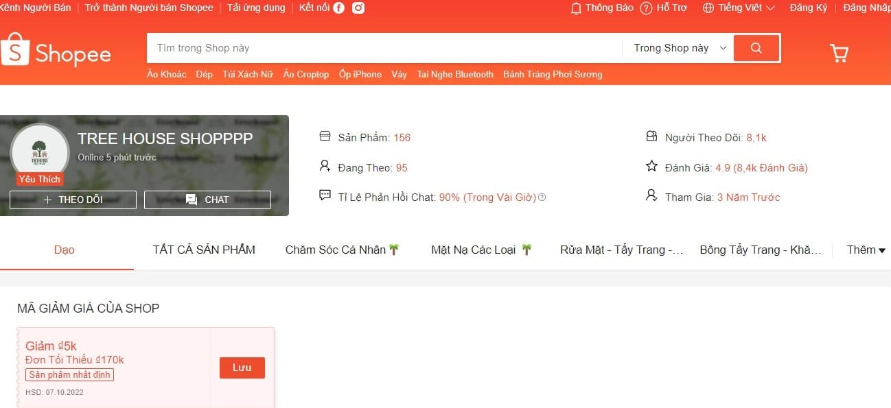 Tree House shop sở hữu 8,1 k người theo dõi, 8,4 k đánh giá và tham gia Shopee 3 năm trước.