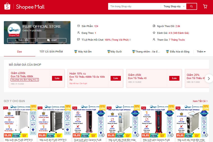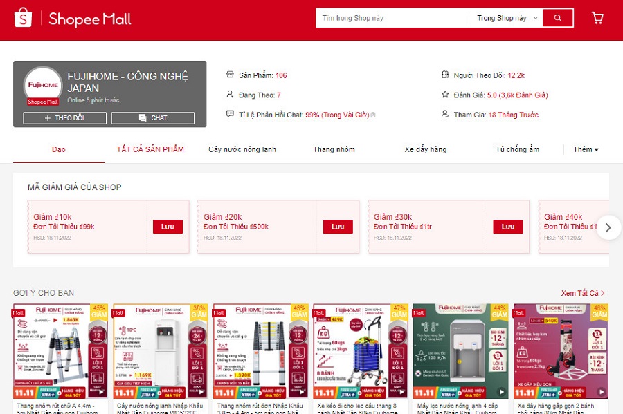 Fuji Home là một trong những shop uy tín trên Shopee cùng với các sản phẩm phục vụ cho gia đình. Với tất cả các sản phẩm đều được nhập khẩu từ nhà sản xuất về Việt Nam. Cùng với các dịch vụ bảo hành bằng điện tử trên 63 tỉnh thành thì đây cũng là điểm cộng rất lớn của shop. Bên cạnh đó, shop còn có các voucher giảm giá nhằm mang đến cho khách hàng những gì tốt nhất.