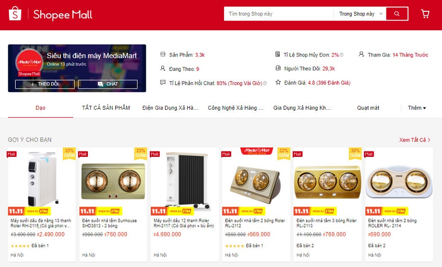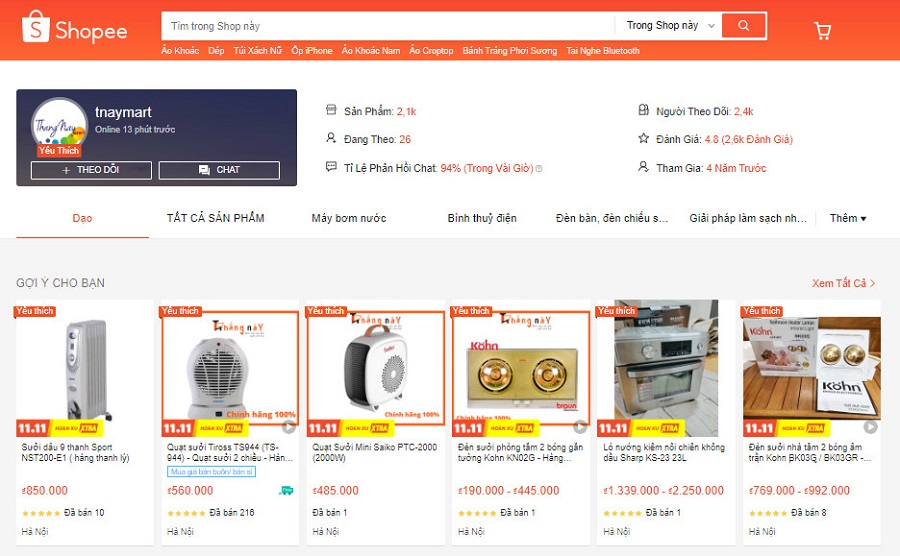 Với rất nhiều chương trình khuyến mãi trong năm nên đây là shop đi đầu trong việc đem lại những tiện ích tốt nhất cho khách hàng khi mua sản phẩm. Các vật dụng thường xuyên sử dụng trong gia đình được shop cập nhật liên tục với nhiều mẫu mã đa dạng. Các ưu đãi như giảm giá 50%, các chương trình trả góp không lãi suất cũng như nhiều voucher có giá trị cũng đủ để cho thấy đây là một shop vô cùng chất lượng. Luôn đặt sự hài lòng của khách hàng lên hàng đầu nên shop luôn chú trọng đến chất lượng sản phẩm. Miễn phí giao hàng cũng như bảo hành vô cùng uy tín.