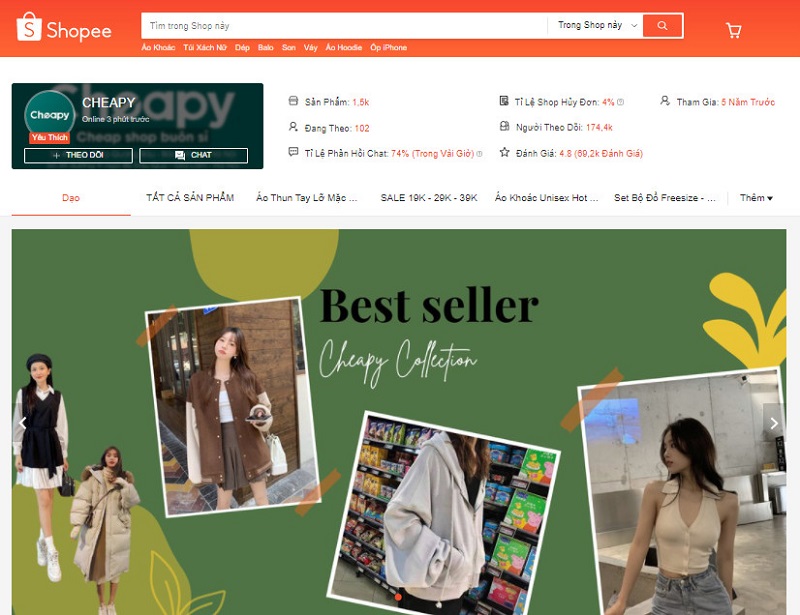 Tham gia từ 5 năm trước nhưng Cheapy vẫn giữ vững được phong độ của mình khi lượt đánh giá sao tới 4.8*. Không chỉ vậy, shop cũng sở hữu lượng người theo dõi khổng lồ 174,3k người…