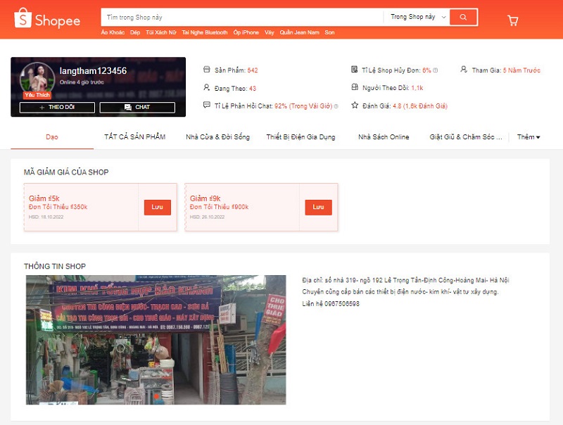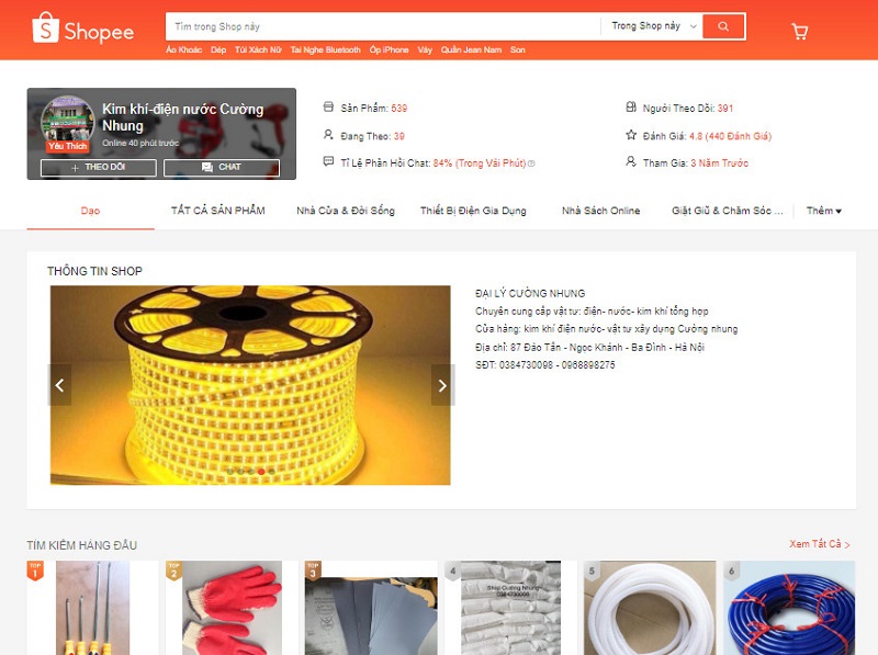 Kim khí - điện nước Cường Nhung là gian hàng chuyên cung cấp vật tư như điện - nước - kim khí tổng hợp cho bạn lựa chọn. Gian hàng đã phân chia các sản phẩm theo danh mục cho bạn dễ tìm kiếm sản phẩm mà bạn muốn. Không chỉ kinh doanh sản phẩm trên sàn thương mại điện tử Shopee mà Cường Nhung còn có riêng cửa hàng ở ngoài với tên là cửa hàng kim khí điện nước - vật tư xây dựng Cường Nhung.