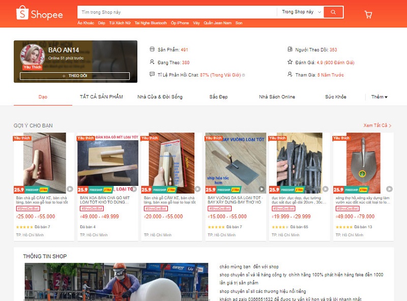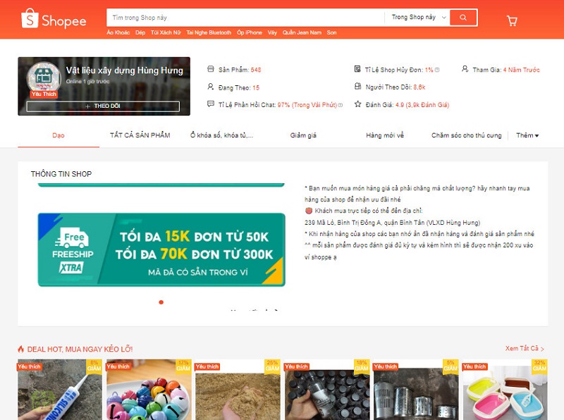 Có rất nhiều gian hàng bày bán các sản phẩm vật liệu xây dựng uy tín trên Shopee. Ngay sau đây, chúng tôi sẽ gợi ý cho bạn 7 Shop bán vật liệu xây dựng uy tín, chất lượng và được yêu thích trên Shopee cho bạn tham khảo và có thể lựa chọn thêm vào giỏ hàng.