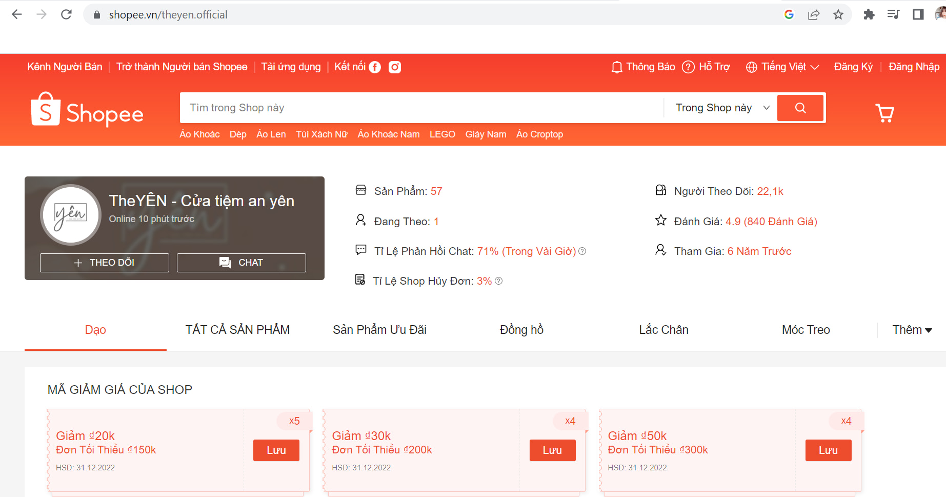 The Yên - Tiệm của an yên chính là Shop đầu tiên mà Shopeeanalytics muốn giới thiệu cho các bạn khi có nhu cầu mua vòng tay may mắn. Shop có 22.1K lượt theo dõi, 4.9/5* đánh giá nên bạn hoàn toàn có thể yên tâm về chất lượng bán hàng cũng như chăm sóc khách hàng. Shop có rất nhiều mẫu lắc tay, vòng tay may mắn, tượng trưng cho sự sung túc, viên mãn, mọi người có thể tham khảo nhé.