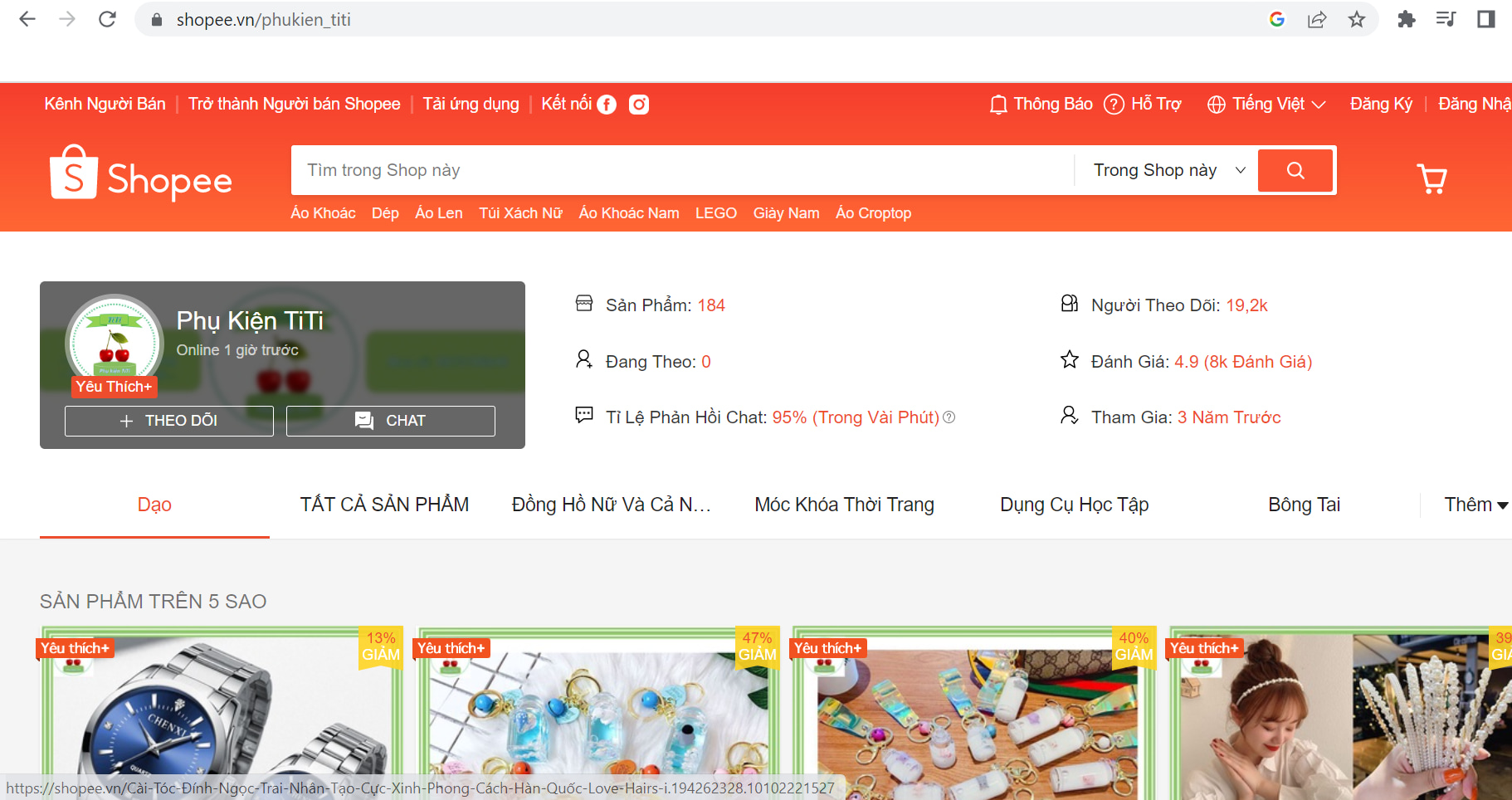 Tiếp theo, nằm trong danh sách những Shop bán phụ kiện - vòng tay may mắn mà Blog muốn gợi ý cho bạn đó là Shop Phụ kiện TiTi. Shop này có 19.2K người theo dõi cùng với 8K đánh giá 4.9/5*. Các mẫu vòng tay của Shop rất đa dạng và còn có vòng hợp với từng mệnh. Đây cũng là lí do gì sao TiTi lại luôn nằm trong TOP những Shop bán vòng tay may mắn "đắt khách" nhất 2022 vừa qua.