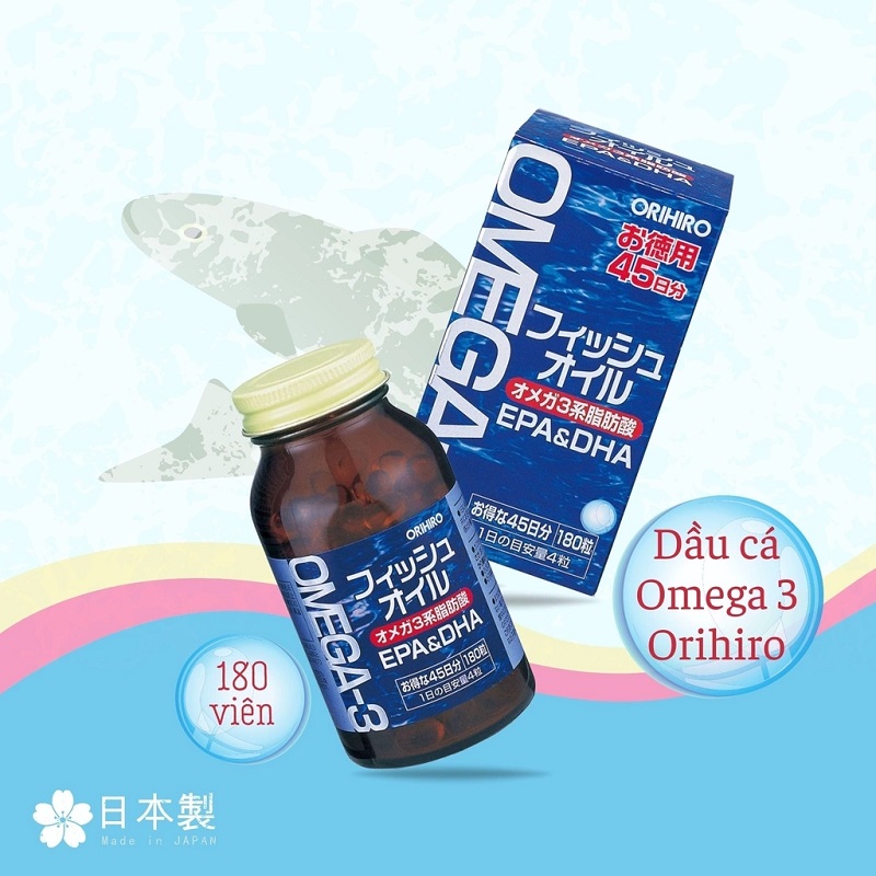 Orihiro là nhà sản xuất viên uống dầu cá Omega 3 này. 1 hộp gồm 180 viên. Sản phẩm có nhiều chức năng như hỗ trợ cải thiện các hoạt động của mắt, giảm thiểu tình trang mù lòa và bệnh lý về mắt. Ngoài ra, sản phẩm còn giúp đẹp da, phát triển não bộ, tăng trí nhớ, hỗ trợ miễn dịch, giảm tỷ lệ mắc bệnh ung thư vú ở nữ.