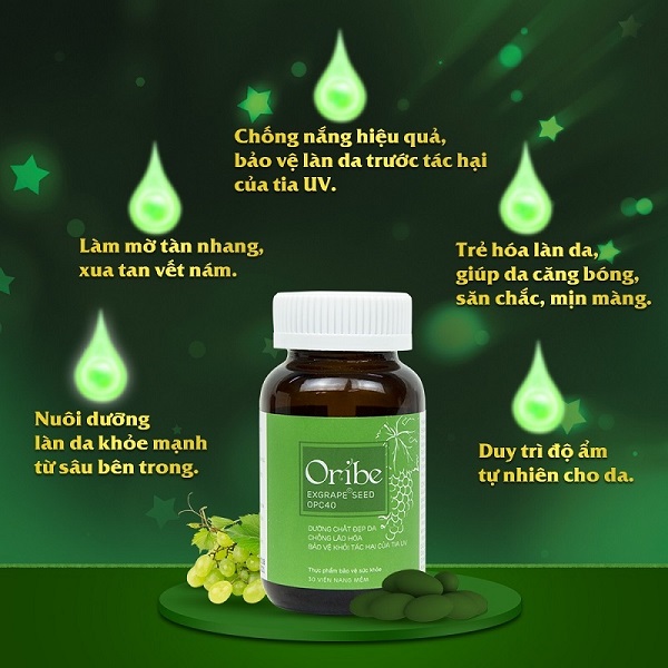 Viên uống trắng da Oribe với chiết suất từ nho Pháp với thành phần collagen từ cá biển và vitamin C, vitamin E giúp cung cấp đầy dưỡng chất và nuôi làn da sáng mịn từ bên trong. Sản phẩm này giúp duy trì một làn da trẻ trung nhưng không kém phần khỏe mạnh và rạng ngời. Dùng 2 viên mỗi ngày da sáng, tạm biệt nám và tàn nhang.