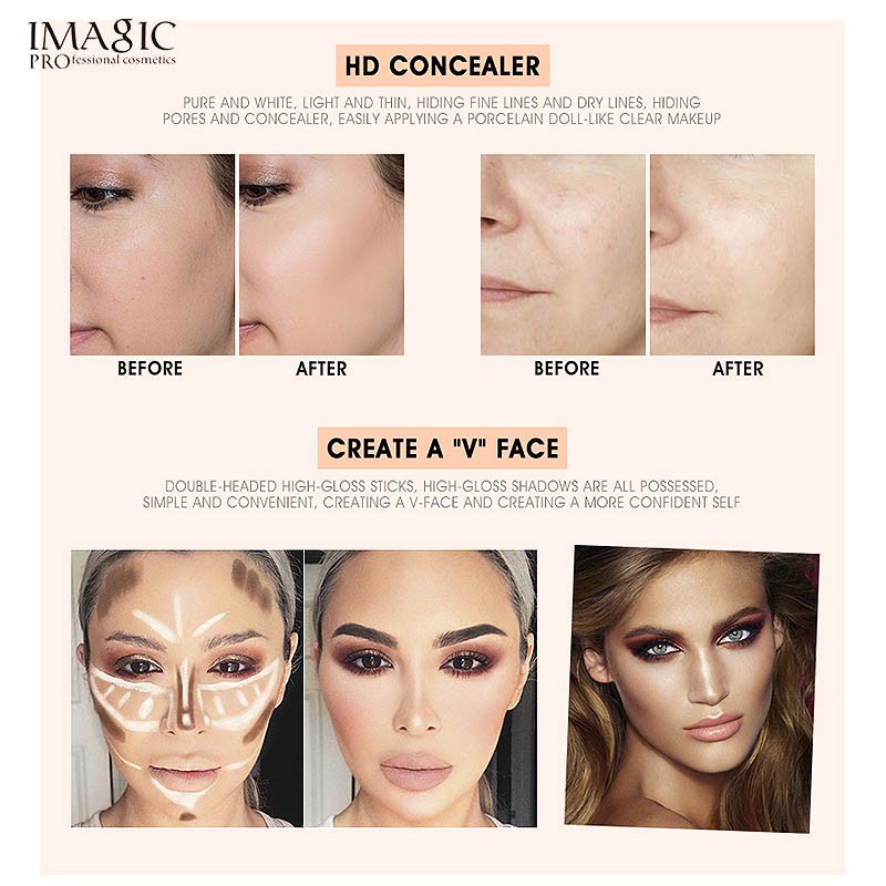 Kết cấu của em tạo khối, bắt sáng Imagic Pro có dạng kem giúp khuếch đại vẻ đẹp của gương mặt, che khuyết điểm, tạo điểm sáng và đường viền dễ dàng. Sản phẩm có 3 tông màu cho người mua chọn lựa phù hợp với màu da của mình.