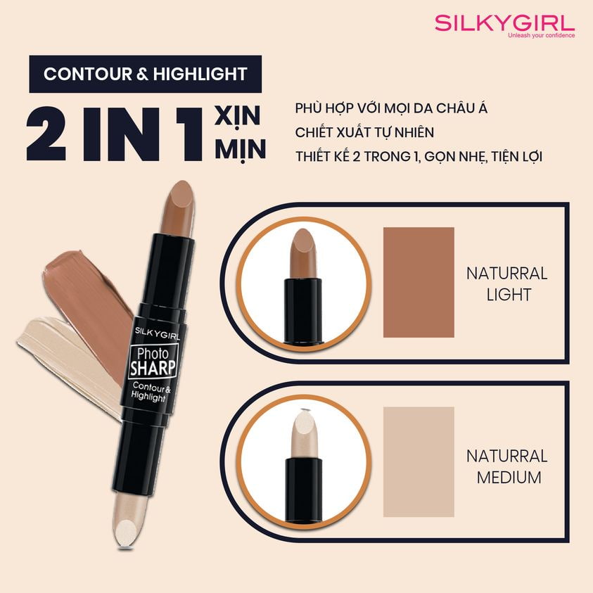 - Thỏi tạo khối dạng kem Silkygirl Photosharp Contour & Highlight 2 đầu - 8g