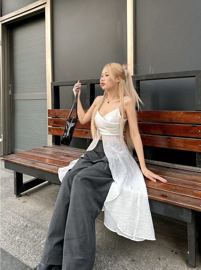 Áo hai dây xẻ tà dài được làm từ chất liệu vải tơ xốp siêu xinh. Áo được thiết kế độc đáo với vạt áo xẻ tà cực trendy trong tone trắng nhẹ nhàng. Form áo chiết eo tôn dáng làm nổi bật dịu dàng nhưng vẫn vô cùng quyến rũ.