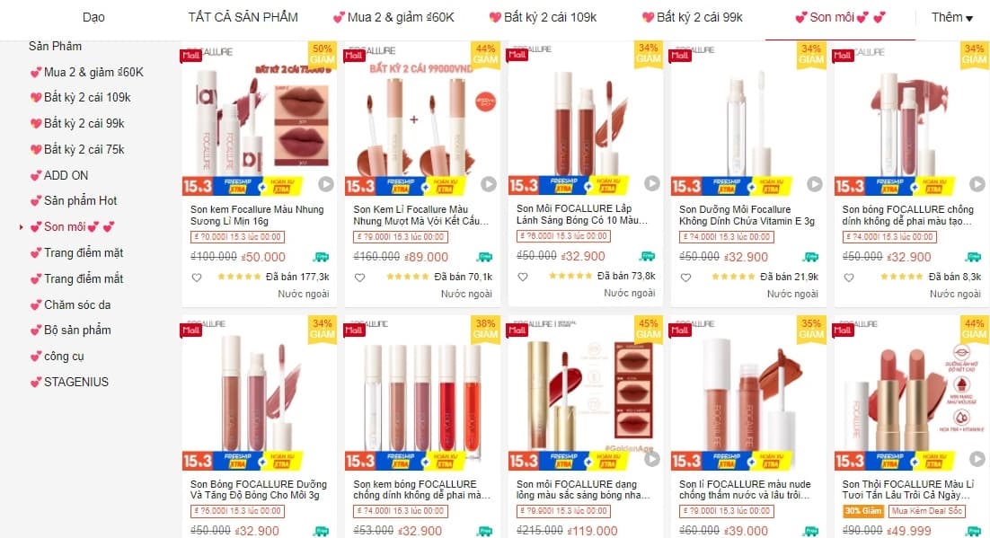 Mỹ phẩm Focallure chính hãng là lựa chọn của những khách hàng yêu thương hiệu này. Tại Shopee có đầy đủ các sản phẩm cho mọi người lựa chọn. Nhanh tay cập nhật thông tin hữu ích, ghé ShopMall để tậu cho mình thôi nào.