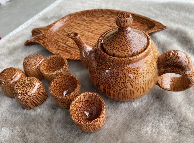 3. Bộ bình trà bằng gỗ dừa hình chiếc lá
