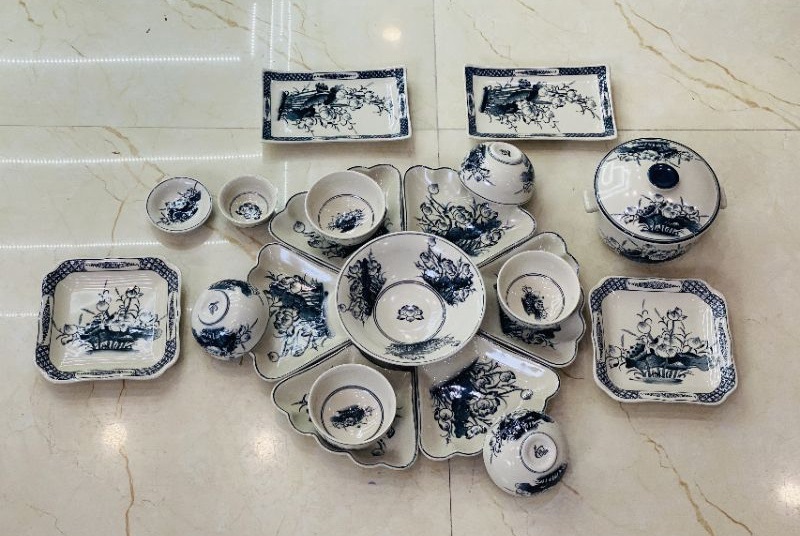 4. Set bát đĩa sen tràm vẽ tay thủ công