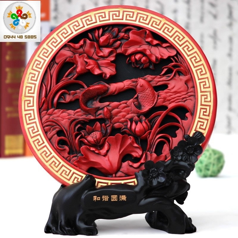 Tranh đĩa song ngư vọng nguyệt mang ý nghĩa tốt lành thường được gia chủ đặt trong nhà với mục đích lọc không khí trong lành, khử tà khí và khử bức xạ. Hình ảnh 2 chú cá còn mang ý nghĩa của sự cát tường, gia đình hòa hợp. Sản phẩm này được chế tạo mặt trước làm từ nhựa cứng, mặt sau làm từ than hoạt tính ép thành khuôn tròn, chân đế bằng nhựa và được xem như đồ vật phong thủy hút vận may cho gia chủ.