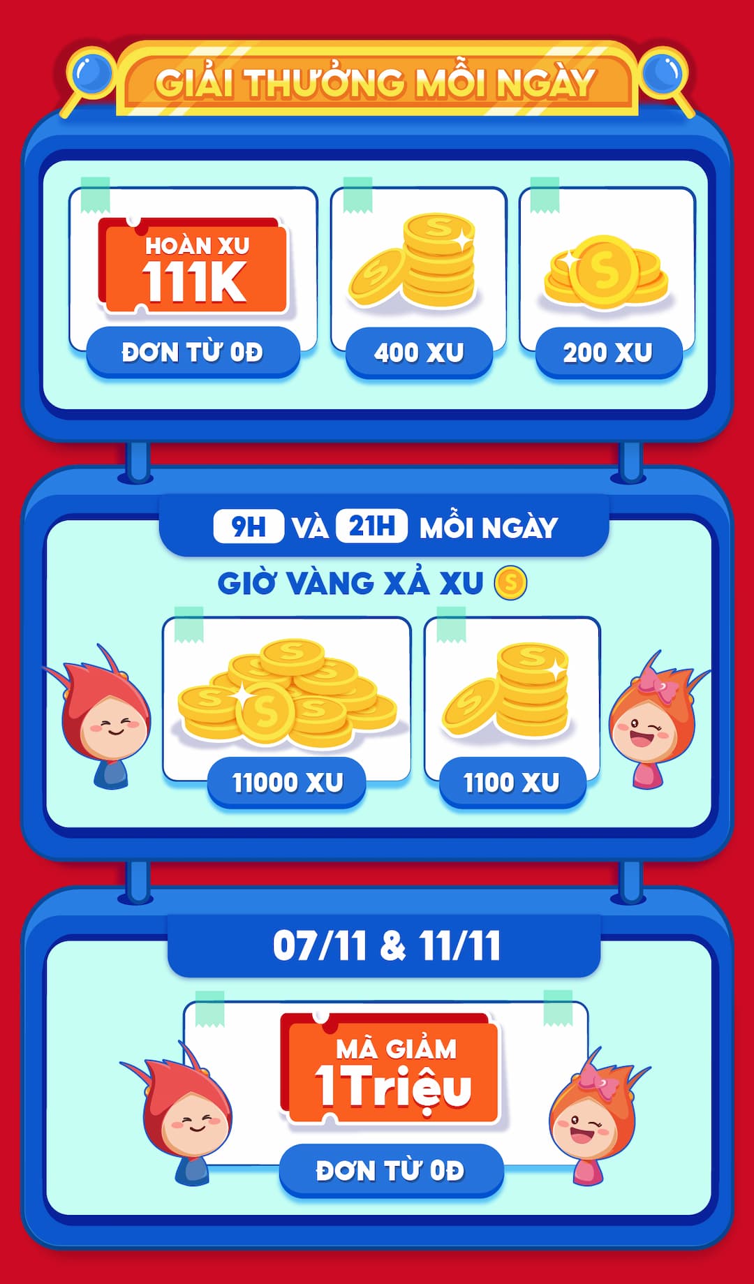 Lưu ý: Giải Kho Xu sẽ được gửi đến người dùng từ ngày 24-26/11/2021. Người dùng chỉ nhận được tối đa 01 giải thưởng từ Phiếu Dự Thưởng, ưu tiên giải có giá trị cao.