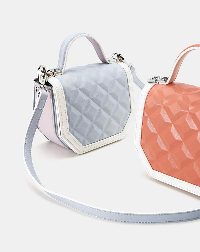 Nếu như thiết kế đính đinh tán phù hợp với cá bạn nữ có phong cách mạnh mẽ, cá tính thì với thiết kế dập nổi hình kim cương này lại dành cho những nàng yêu phong cách thanh lịch, sang trọng. Với thiết kế hình dáng nhỏ nhắn, gọn gàng và hình hộp trông đẹp mắt, vô cùng thuận tiện khi mang.