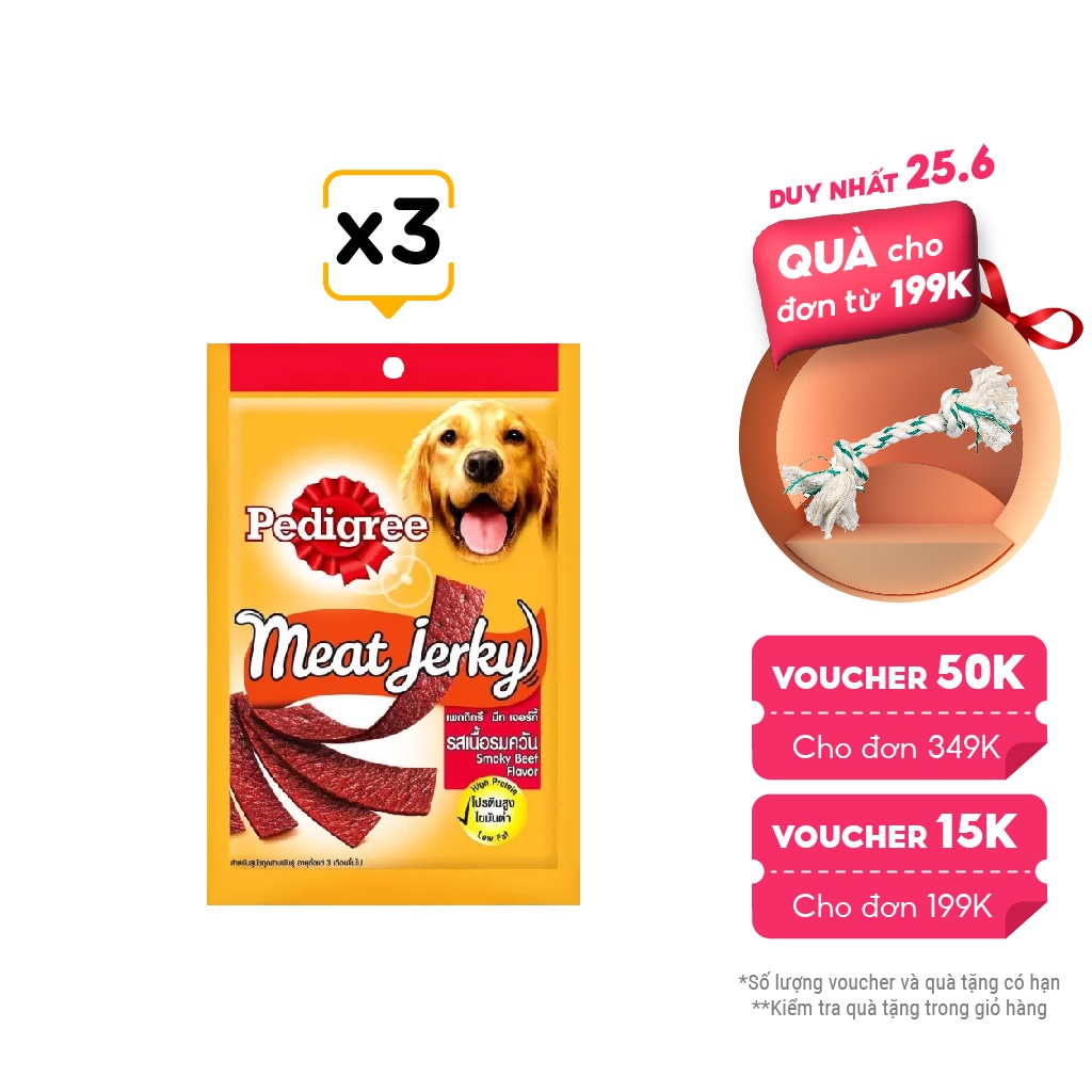 3.2. Bộ 3 thức ăn vặt cho chó Pedigree Meat Jerky hương vị bò xông khói 80g