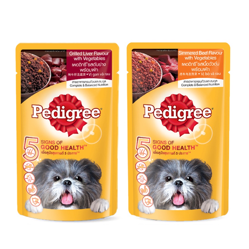 3.6. Bộ thức ăn cho chó lớn dạng sốt PEDIGREE® vị bò hầm và rau củ 130g + vị gan nướng và rau củ 130g (12 gói)