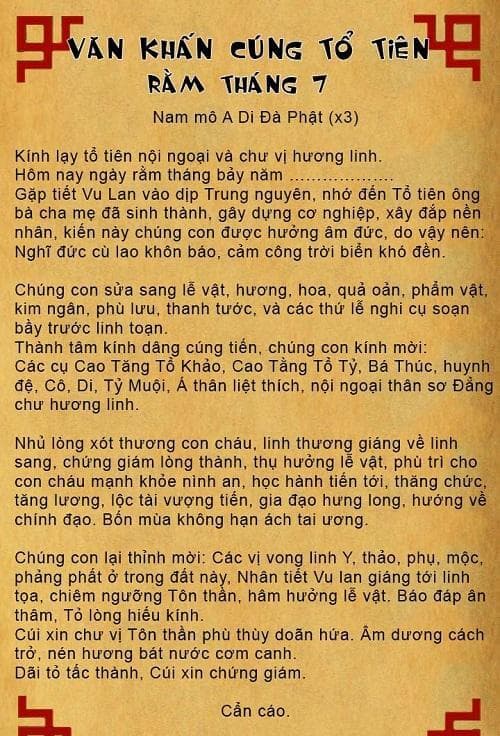 Bài văn khấn cúng rằm tháng 7 cho gia tiên