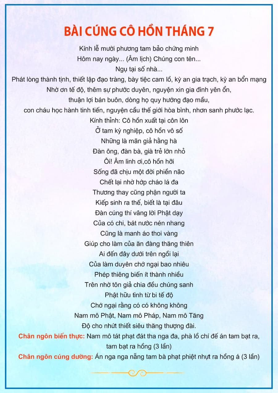 Bài văn khấn cúng rằm tháng 7 cho chúng sinh