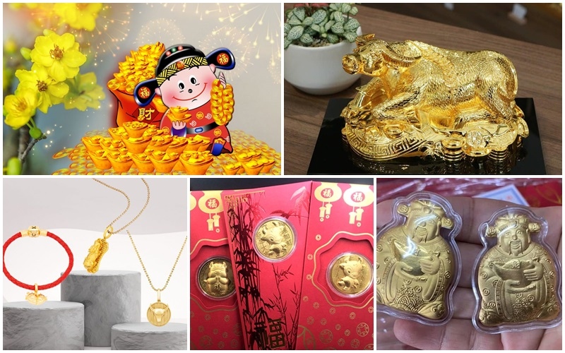 Người Việt có thói quen đi mua vàng vào ngày Thần tài để lấy vía. Do đó, bạn cũng có thể mua các loại vàng: vàng miếng, vàng trang sức... để cầu một năm đắc tài, đắc lộc, tiền bạc rủng rỉnh.