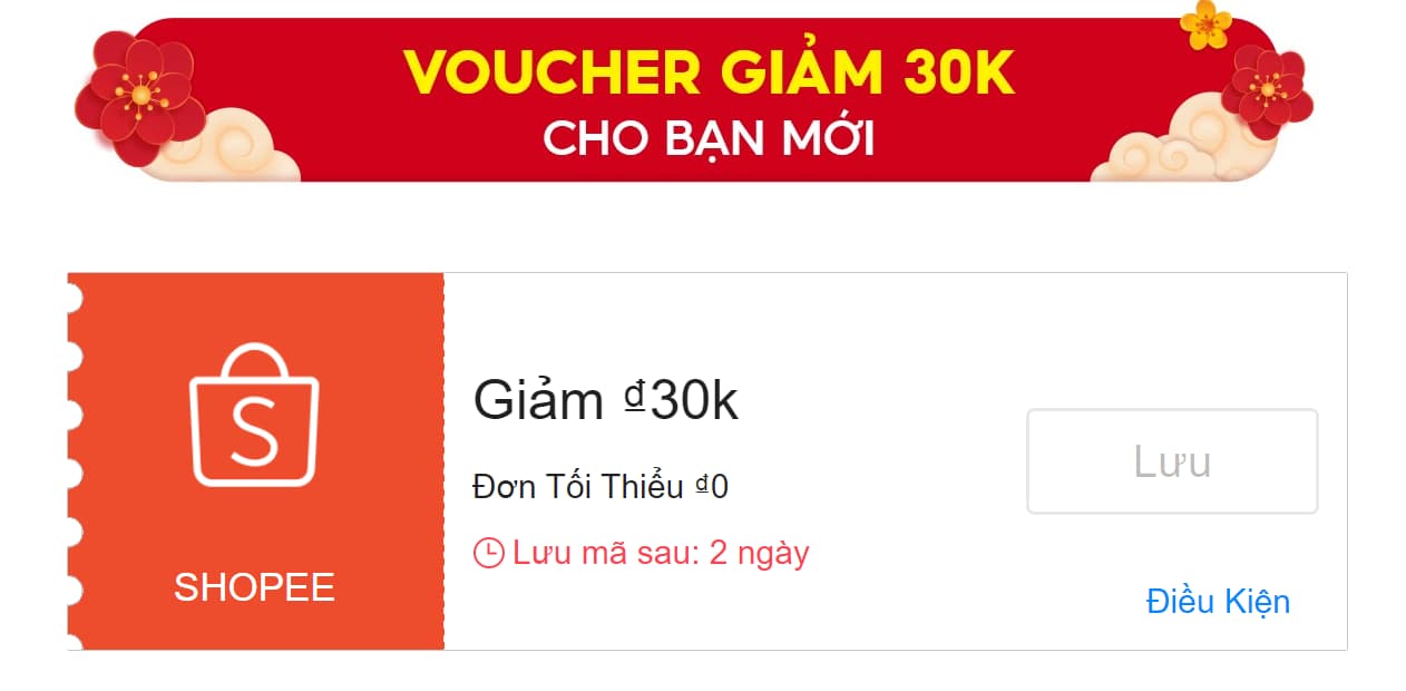 Voucher giảm 30K cho đơn hàng từ 0Đ
