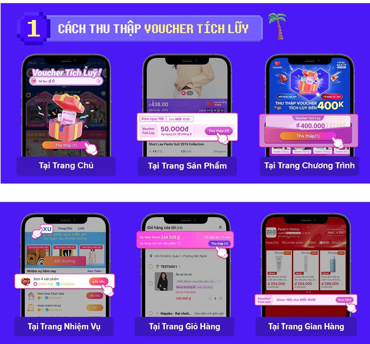 Voucher tích lũy sẽ được tung ra hàng ngày, voucher sẽ hết khi người dùng thu thập hết số lượng phát ra. Thế nên, bạn tuyệt đối đừng bỏ lỡ ngày nào để ghé app Lazada thu thập voucher nhé. Hiện tại, bạn có thể lưu mã theo những cách sau: