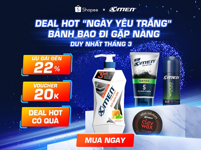 Chương trình khuyến mãi deal hot X-men sale “Ngày Yêu Trắng” bảnh bao đi gặp nàng sẽ diễn ra từ 0h00 ngày 01/03/2023 đến 23h59 ngày 31/03/2023. Ưu đãi nổi bật gồm: