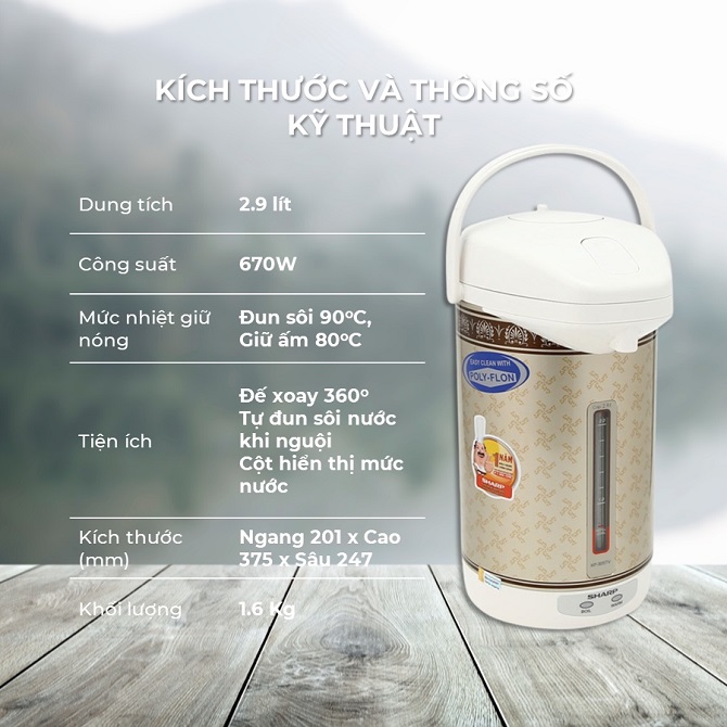 1. Bình thủy điện Inox Sharp KP-30STV(RB) công suất 670W, dung tích 2.9L