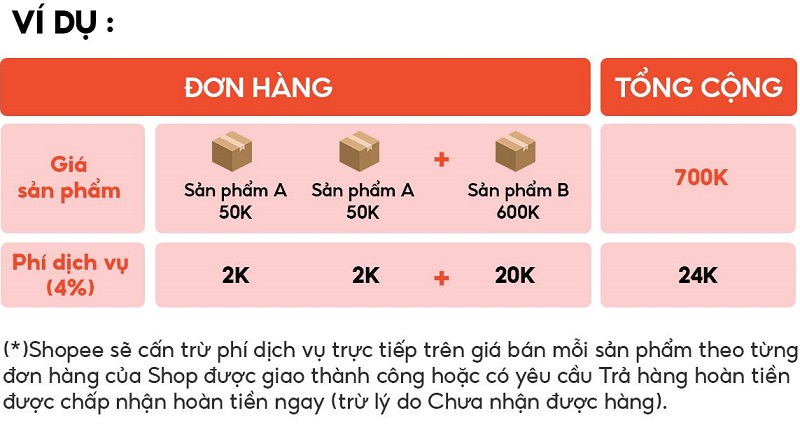 Lưu ý Phí dịch vụ đã bao gồm VAT và chỉ áp dụng được khi có thông báo mua hàng thành công. Phí dịch vụ sẽ được trừ trực tiếp trên những đơn hàng thành công của Shop.