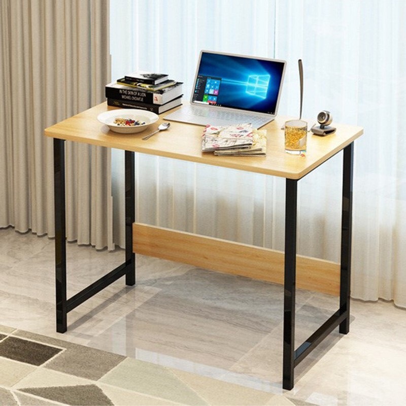Bàn có thiết kế đơn giản, đẹp đẽ và thanh thoát, phù hợp làm việc, học tập hay decor phòng,... Phần mặt bàn được phủ lớp Melamine dày dặn, còn phần khung sắt được sơn tĩnh điện.