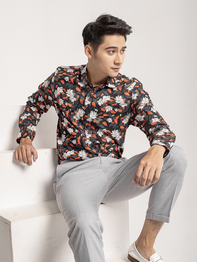 1. Sơ mi họa tiết hoa lá cho nam