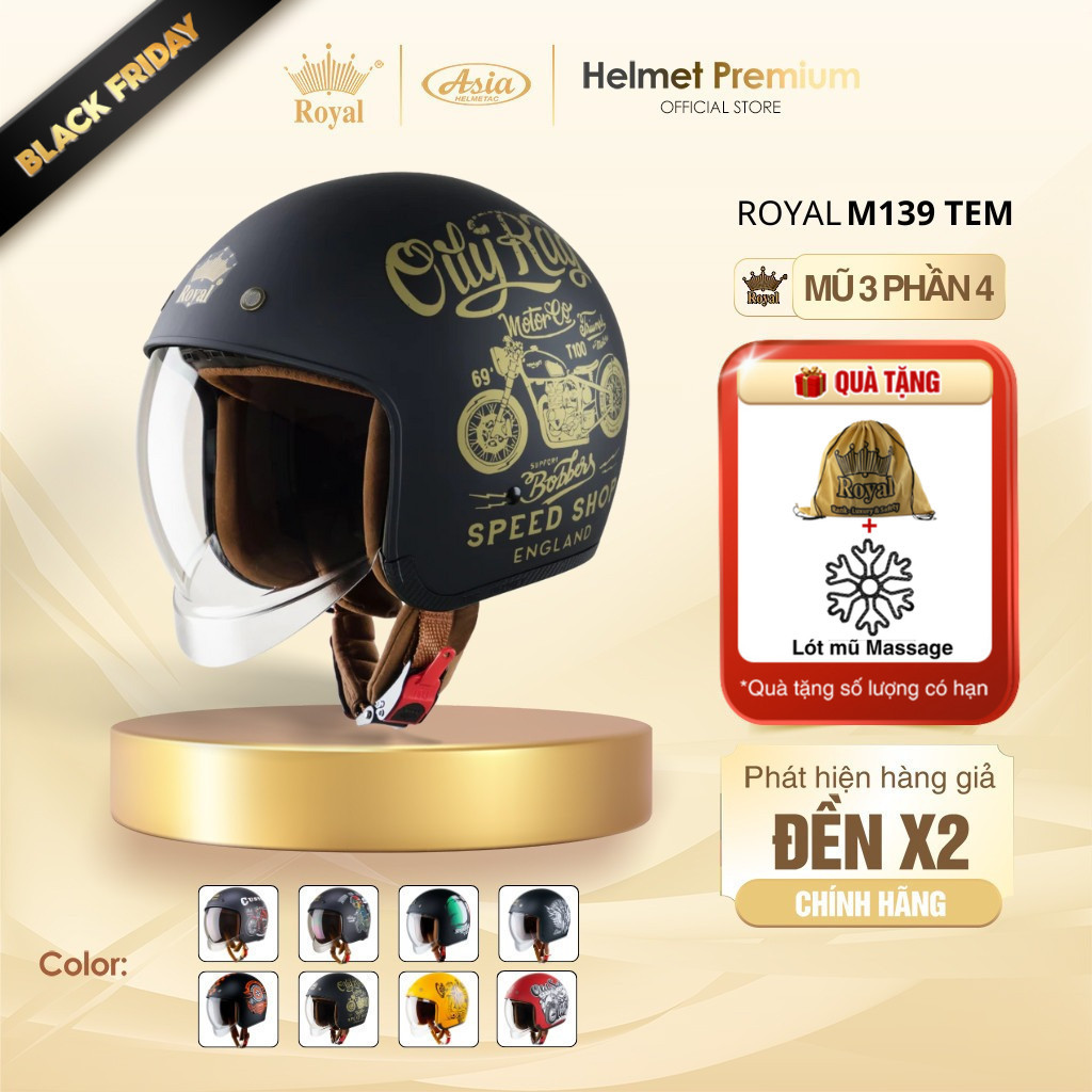 | Mũ Bảo Hiểm 3/4 Royal Chính Hãng M139 Kính Âm Dài Chống Tia UV, Nón Bảo Hiểm Royal Có Kính Nam Nữ Chính Hãng | 38.85% | 699,999₫ | 218 | Mở Shopee | ||